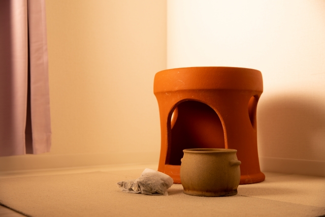よもぎ蒸しは、よもぎと数種類のハーブを煮立て、その蒸気で下半身を温める韓国伝統の自然療法です。
